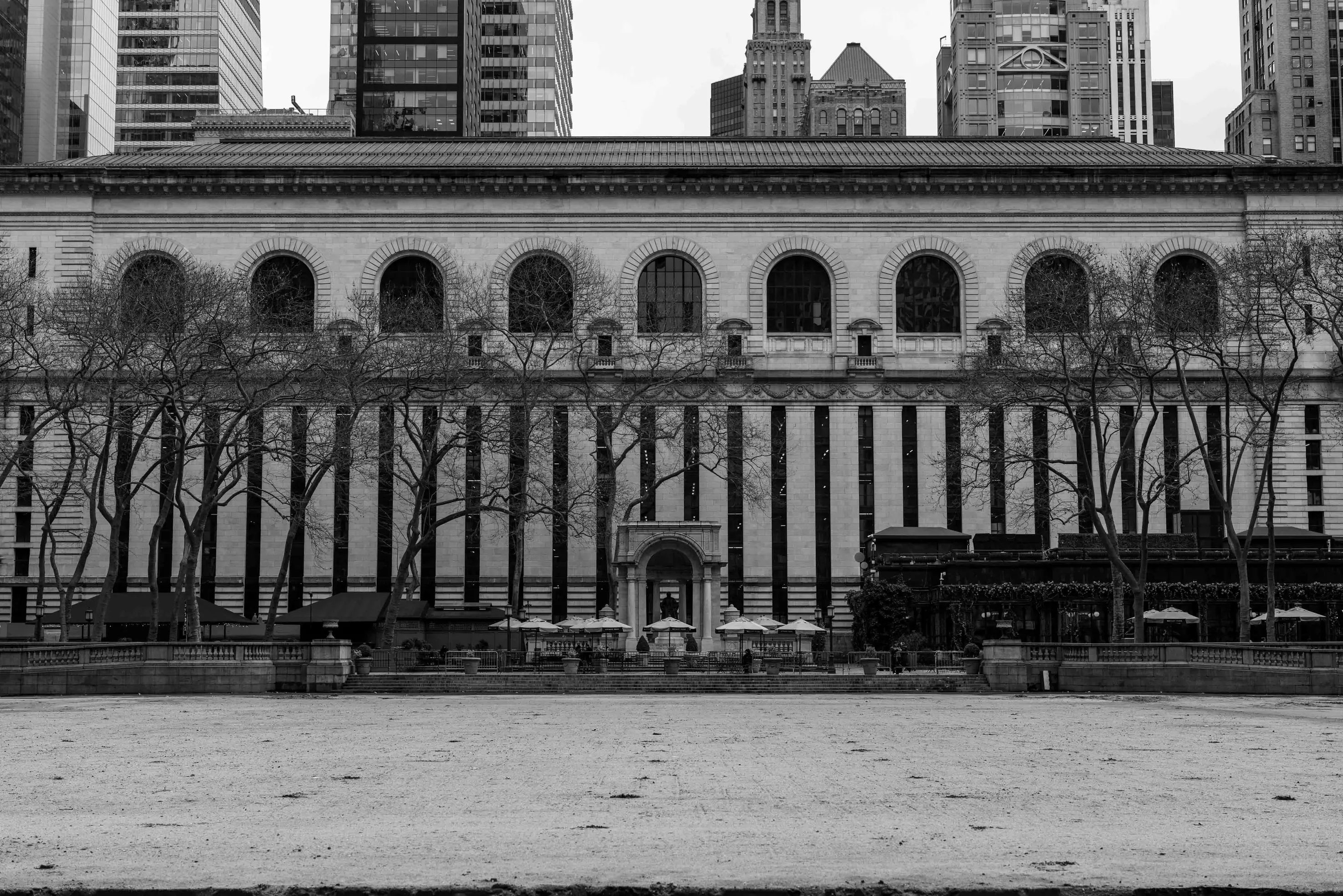 Bryant Park has some construction going on. It was nice to get a photo of the space with almost no people in the middle of a busy day. I was happy about getting the jagged edge of the space on construction at the bottom of the frame; I only realized that after a couple of exposures, but it grounds the whole photo well.
