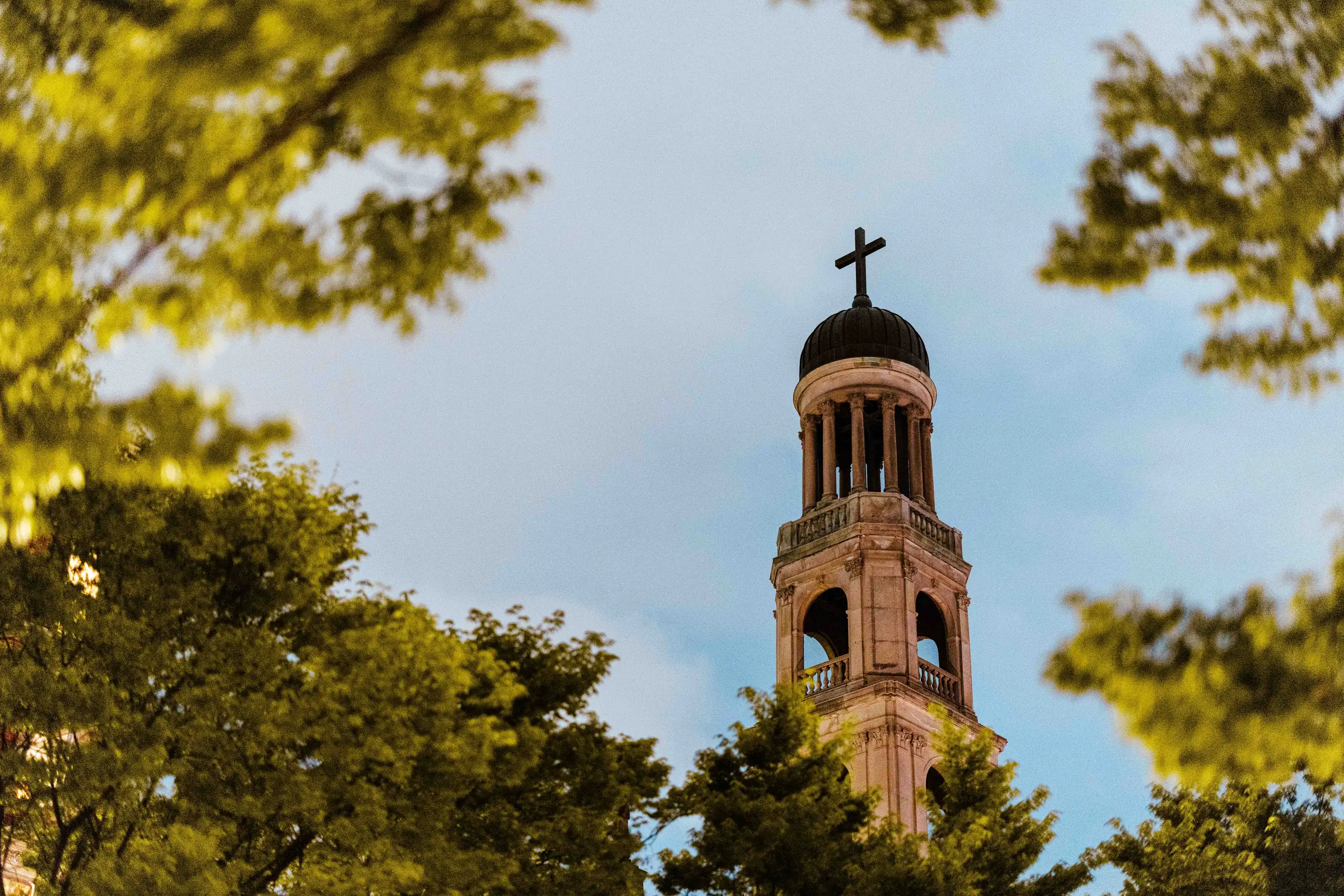 I spent a while playing with shutter priority to capture the fountain, but in the end, the framed tower of the curch behind some trees was so much better.